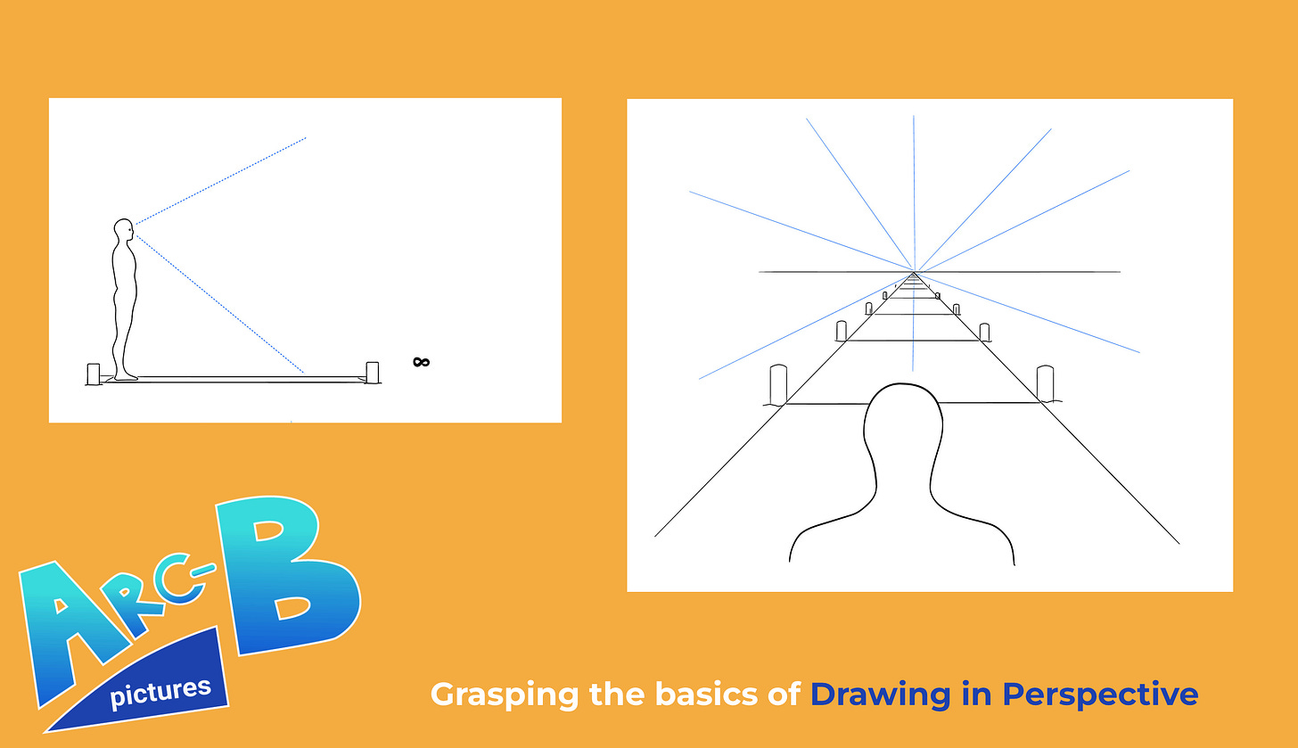Point Perspective is a method for creating the illusion of depth on the flat surface of a 2D image by projecting radiating lines out from distant infinity. This mimics what we see with our eyes - we are always seeing things physically from a single point of view. Parallel lines provide the clearest illustration of this phenomenon and is how we normally show this most clearly in our artwrok. In drawing we refer to three main types of perspective: one-point, two-point, and three-point perspective.