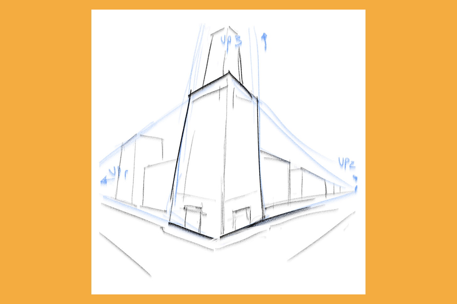 If you are feeling more confident, try drawing a two-point perspective cityscape. This usually works best if your main subject includes the corner of a building, city block or street that can show the two planes receding to their vanishing points. It can be as simple or as detailed as you like but make sure that you establish and use those two main vanishing points.